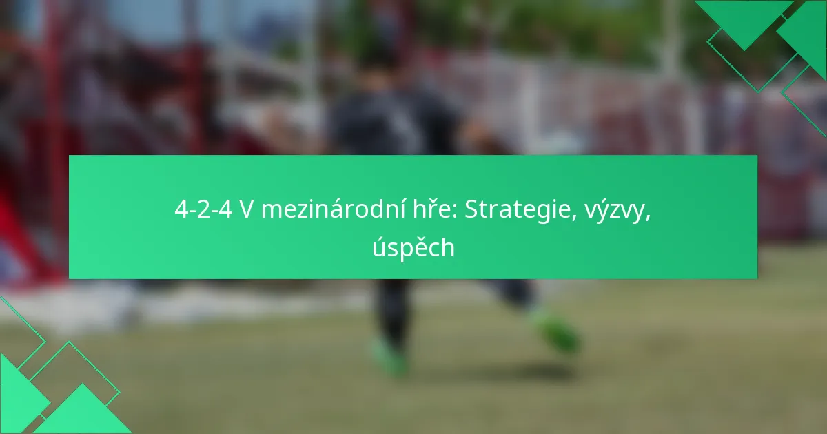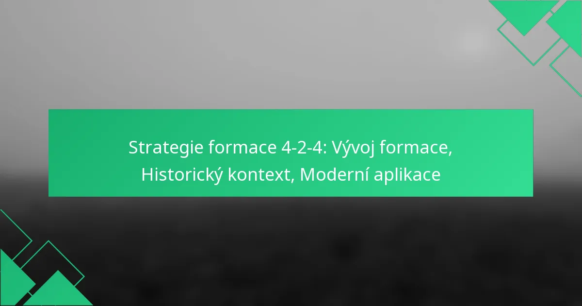Fotbalová formace 4-2-4 je taktická uspořádání, která zahrnuje čtyři obránce, dva záložníky a čtyři útočníky. Tato formace zdůrazňuje ofenzivní hru při zachování solidní obranné struktury, což umožňuje týmům vyvíjet tlak a vytvářet příležitosti ke skórování.
