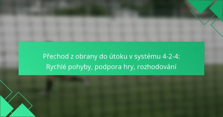 Formace 4-2-4 je dynamické taktické uspořádání ve fotbale, které vyvažuje ofenzivní sílu s defenzivní stabilitou. Střední obránci hrají v této formaci klíčovou roli, mají za úkol hlídat protivníky, usnadňovat distribuci míče a zajišťovat soudržnou defenzivní strategii. Jejich schopnost efektivně řídit úkoly hlídání je nezbytná pro udržení struktury týmu a zmaření útoků soupeře. Key sections in…